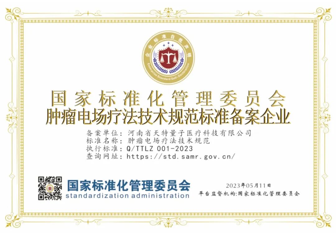 在医疗健康领域,创新是推动进步的关键力量。河南省天特量子医疗科技有限公司,作为生物电场技术研究与应用的先行者,自豪地宣布《肿瘤电场疗法技术规范》自获得国家标准标准化委员会技术标准规范备案企业以来,已经走过了意义非凡的一年。
